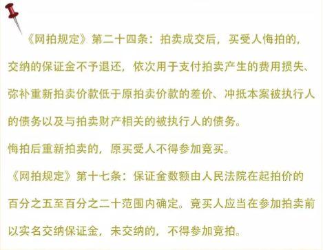 6、悔拍 悔拍是指拍卖成交后,买受人未按照竞拍公告确定的期限内将剩余价款交付人民法院指定账户。